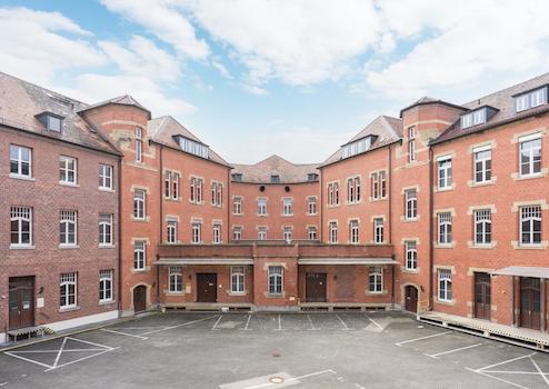 Die Innenhöfe, die von dem Altbau-Areal und dem Neubau-Areal umschlossen sind, bieten zahlreiche Parkmöglichkeiten, Grünflächen, sowie eine mühelose Anlieferung des Warenbestands.
