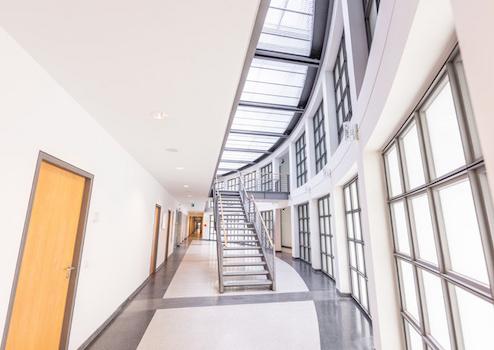 Das Bürogebäude erlaubt eine individuelle Bandbreite an Möglichkeiten von Nutzungsvarianten. Die Büroräume können in verschiedenen Größen und Ausstattungen vom Zellenbüro bis zum Großraumbüro genutzt werden.