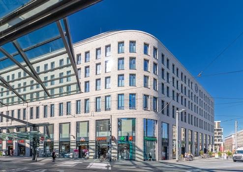 Direkt vor dem Wohn- und Geschäfthaus befindet sich der Hauptknotenpunkt der öffentlichen Verkehrsmittel. Laut der Dresdner Verkehrsbetriebe steigen über 40.000 Kunden an einem durchschnittlichen Wochentag hier ein, aus oder um.