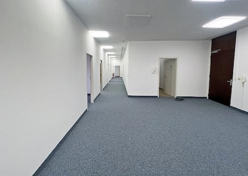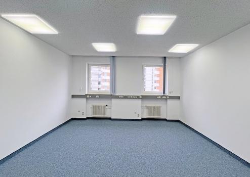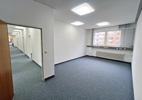 Aktuell ist die Bürofläche in acht separate Einzelbüros unterteilt. Großzügige Fensterfronten sorgen für eine optimale Tageslichtversorgung und ein angenehmes Raumgefühl. Eine elektrische Außenbeschattung an allen Fenstern bietet zusätzlichen Komfort.