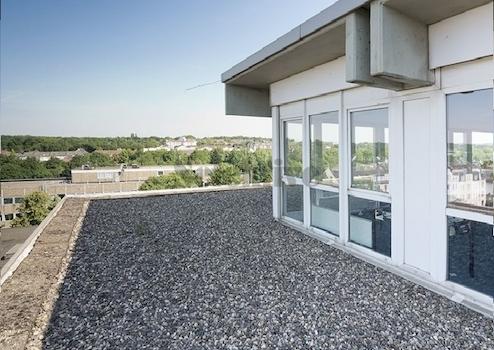 Das Bürohaus beherbergt verschiedene Gewerbe und ist barrierefrei zugänglich. Die Büroräume mit den großen Fensterflächen sind modern ausgestattet und lassen sich je nach Bedarf in verschiedenen Varianten aufteilen. Denkbar ist sogar eine Bürogemeinschaft mit separaten Geschäftsräumen und einem gemeinsamen Empfangs- und/oder Aufenthaltsbereich. Ein Teil des Dachbereichs kann begehbar gemacht werden und sich so in eine angenehme Erholungsfläche verwandeln.