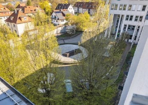 Umringt von zahlreichen Grünflächen liegt der Bürokomplex dennoch zentral und verkehrsgünstig. In der als “Gartenstadt“ bekannten Stadt Fulda kommt die Erholung im Arbeitsalltag nicht zu kurz.