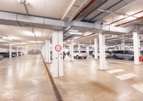 Zur Verfügung stehen insgesamt 227 Pkw Stellplätze, wovon 154 Pkw-Tiefgaragen-Stellplätze und 73 Pkw-Außen-Stellplätze sind.