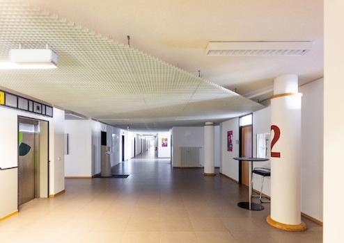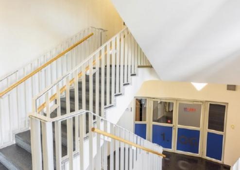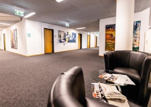 Der OfficePoint Fulda begrüßt seine Besucher mit einem auffallend hellen und großzügigen Foyer. Hier finden Sie ein zentrales Treppenhaus, welches zu jeder Büro-Etage führt, genauso wie zwei Personenaufzüge.
