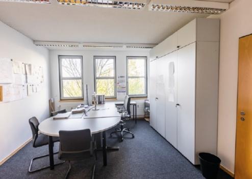 Die Büroräume können beliebig durch die versetzbaren Trennwände verändert werden. Zusätzlich wird der Bodenbelag auf Wunsch angepasst.