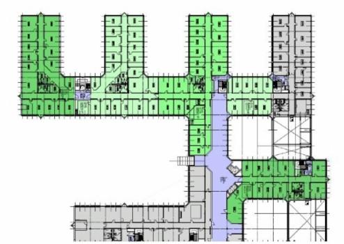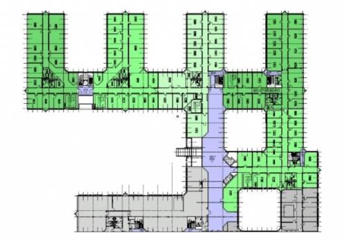Beleuchtung: Rastereinbauleuchten in den Büroräumen und Flurbereichen