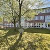 Farblich abgesetzte Klinkerfassaden und weiße Rahmen der Fensterelemente bestimmen das freundliche Erscheinungsbild