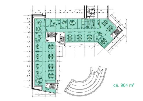 Der Büropark, welcher dieses Objekt beinhaltet, basiert auf der Verbindung von vier separaten, miteinander verbundenen Bauteilen. Besonderer Augenmerk wurde auf die Gestaltung der Außenanlagen gelegt. Die großzügigen Grünflächen im Innenhofbereich runden den Gesamteindruck des Gebäudeensembles ab.