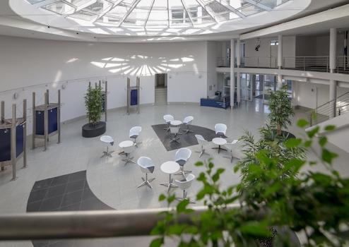Das 6-geschossige Bürogebäude verfügt über vier Eingänge und zwei Treppenhäuser. Der Haupteingang ist durch einen repräsentativen Veranstaltungs- und Vortragssaal mit Raumakustik und großer Leinwand geprägt.
