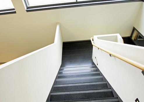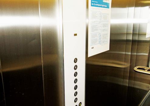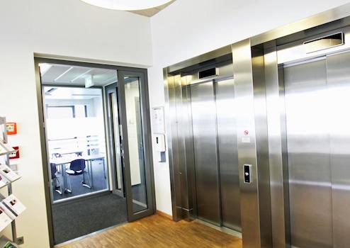 Ist man im 5. Obergeschoss angekommen, gibt es hier eine Eingangshalle, welche hervorragend als Besucherempfang dient. Auf jeweils rechter und linker Seite befinden sich die Flure, die an den einzelnen Büroräumen entlangführen. Die Empfangshalle ist mit Parkett ausgestattet, die Büros und Flure mit Teppichböden.