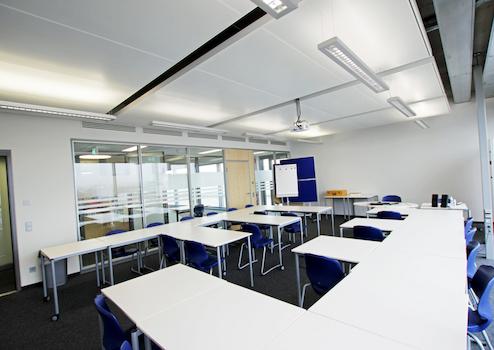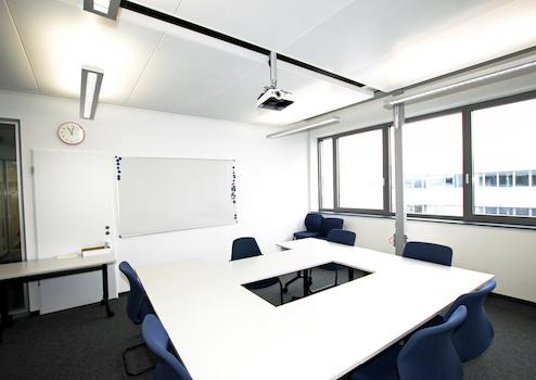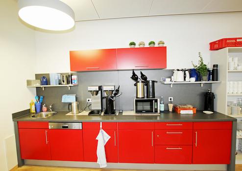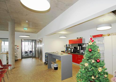 Der begrünte Innenhof mit seinen Außensitzflächen, bietet die Möglichkeit in der Mittagspause zu entspannen oder sich die Beine zu vertreten. Wer das Gebäude jedoch nicht verlassen möchte, kann gerne die ausufernde Außenterrasse nutzen.