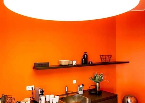 Rasterdecke mit integrierter Beleuchtung: Sorgt für ein angenehmes Raumgefühl.