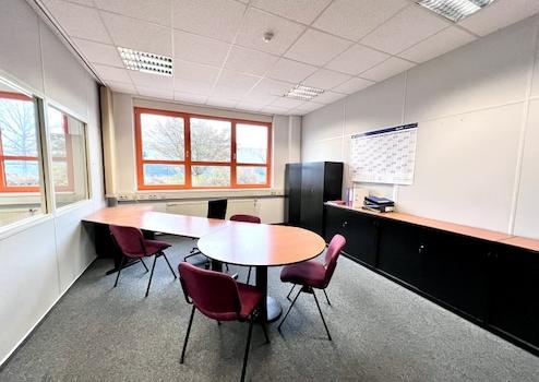 Die Immobilie kann teilweise regaliert und möbliert mit z. B. Schreibtischen, Bürostühlen, Rollcontainer usw. übergeben werden.