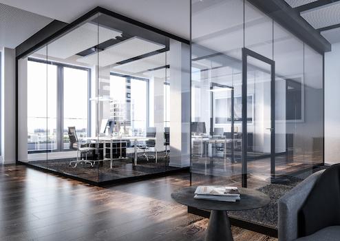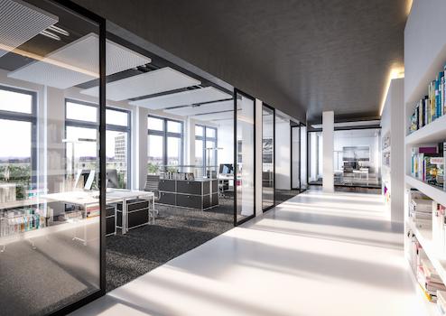 - Bodentiefe Fenster mit dahinterliegender Prallscheibe für fokussiertes Arbeiten