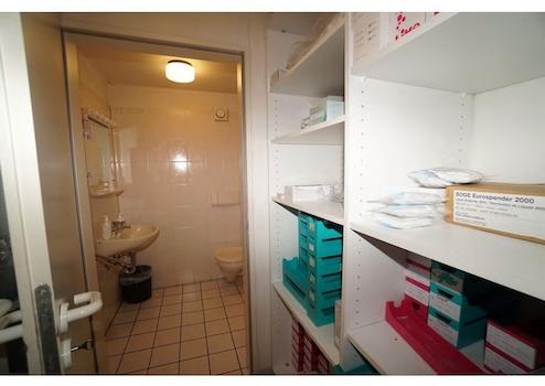 Sanitär: Patienten- und Mitarbeiter-WC. Jeweils einfache Ausstattung mit Handwaschbecken
