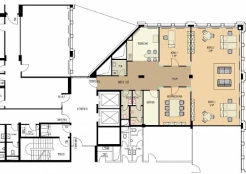 Die flexiblen Grundrisse bieten die Möglichkeit, individuelle Aufteilungen (z.B. Großraum- oder Einzelbürostrukturen) zu verwirklichen. Darüber hinaus trägt die ansprechende Natursteinfassade zu einem repräsentativen Gesamteindruck des Büro- und Geschäftshauses bei. Insgesamt 7 Personenaufzüge sorgen für einen reibungslosen Zugang zu den Büroflächen.