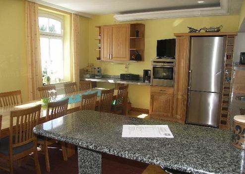 Diese geräumige Immobilie ist vielseitig nutzbar. Als EFH mit zahlreichen Ferienzimmern oder als ZFH. Im Erdgeschoss erreichen Sie von der Diele aus 1 Wohnzimmer mit Kaminanschluss, 2 Schlafzimmer, 1 Tageslichtbad sowie ein Gäste WC und 1 Küche. Im Obergeschoss finden Sie 2 Schlafzimmer, jeweils mit einem angegliedertem Bad sowie eine offene Küche mit großem Essbereich und einem Wohnzimmer vor. Das ausgebaute Dachgeschoss bietet Ihnen weitere 4 Schlafzimmer mit jeweils einem angegliederten Bad. Die Immobilie wird zur Zeit im EG als Wohneinheit und im OG und DG als Ferienwohnung und Ferienzimmer zur Vermietung genutzt. Vor dem Gebäude befinden sich Außenstellplätze, im rückwärtigen Bereich eine integrierte Garage für 2 Fahrzeuge. Hier im Tiefgeschoss befinden sich außerdem noch Abstellraum, Gasheizungsanlage aus 2020 und Waschküche. Das Zufahrt und - Hofgelände wurde 2020 komplett, mit Untergrund, neu gepflastert. Hinter dem Gebäude finden Sie eine ca. 1.400 m² große Gartenfläche vor, darin 2 Gartenhäuser aus Holz ( aus 2020 ) ein Grillplatz, Terrasse, Zugang zum örtlichen Radweg . Großzügige Rasenflächen laden zum ungestörten Verweilen ein.