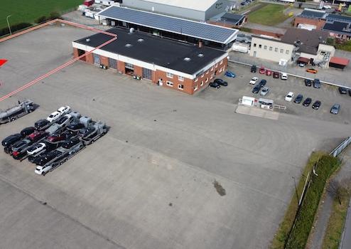 * Fläche Grundstück 3.340 qm (eingezäunt für ca. 60 LKW´s mit Hänger)