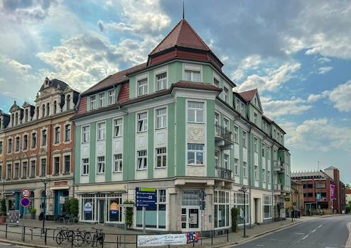Das Wohn- und Geschäftshaus liegt gut sichtbar an einer Hauptverkehrsstraße, in A-Lage von Radebeul-West.