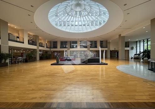 Um die vier groß dimensionierten Atriumhöfe, die dem Objekt seinen namen gaben, gruppieren sich Büroeinheiten von jeweils ca. 350 und ca. 405 m², die dem Mieter zusammengeschaltet bis zu rund 4676 m² Raum auf einer Etage bieten können. Ein umbaufähiges Trennwandsystem ermöglicht unterschiedlichste Raumzuschnitte, was die Immobilie für kleine Firmen wie auch Unternehmen mit großem Personalstamm interessant macht. Das zweigeschossige, lichtdurchflutete Foyer des Gebäudes (mit serviceorientiertem Casino inkl. Catering-Angeboten für z.B. Konferenzen im Haus) ist nicht nur Treffpunkt für Mieter und Besucher, sondern kann auch als exklusives Ambiente für Events und Präsentationsraum sowie für Ausstellungen genutzt werden.