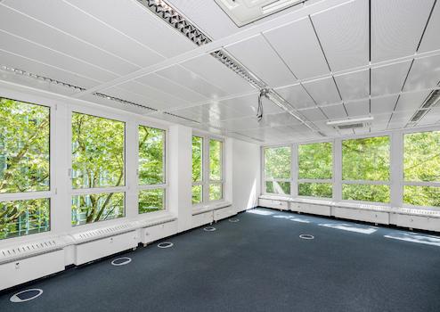 Die lichtdurchfluteten Räumlichkeiten verfügen über Teppich als Bodenbelag. Die Verkabelung erfolgt über einen Hohlraumboden, zudem verfügen die Flächen über einen außenliegenden elektrischen Sonnenschutz, Teilklimatisiereung und eine Teeküche. Eine Kantine ist ebenfalls im Objekt vorhanden. Parkmöglichkeiten bestehen sowohl außen auch auch in der objekteigenen Tiefgarage.