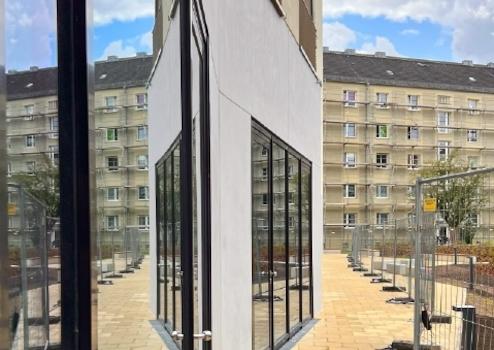 Direkt an der frequentierten Fetscherstraße wurde 2023 ein Wohn- und Geschäftshaus fertiggestellt.