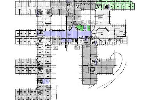 Beleuchtung: Rastereinbauleuchten in den Büroräumen und Flurbereichen