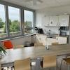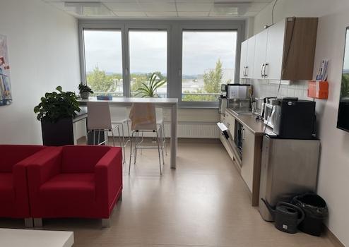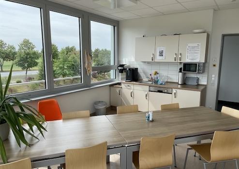 Für entspannte Pausen sorgt eine hauseigene Kantine, sowie ein begrünter Hof.
