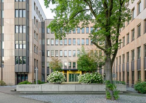 Die Immobilie an beliebten Düsseldorfer Kennedydamm überrascht mit ruhigen Büroräumen und Blick ins Grüne. Besonderes Highlight: flexible Grundrisse bieten die Möglichkeit, individuelle Bürokonzepte variabel umzusetzen. Das digitalisierte Gebäude ist eine moderne Büroimmobilie, die zeitgemäßen Anforderungen entspricht. Dazu gehören auch Faktoren, die sich positiv auf die Wohlfühlqualität auszahlen: warme Farbtöne, hochwertige Materialien und Angebote wie zum Beispiel die Nähe zum Rheinpark für eine ausgewogene Work-Life-Balance.