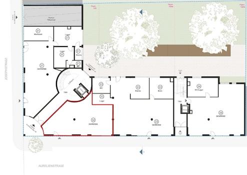 Wir bieten Ihnen einen Gewerberaum an, der sich momentan noch im Rohbau befindet.