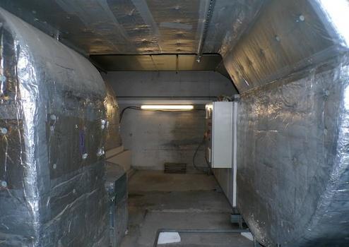 Massicbetonhalle, seitlich unter dem Hallendach teilweise offen (zur Entlüftung der Autoabgase für die aktuelle Nutzung als PKW-Festmiethalle), einer Zufahrtsrampe vom darunterliegenden Parkhaus, der zum Kauf/Eigentumsumfang gehört, ein kleinen Lagerraum und einem großen Nebenraum, in dem sich die Schalt- und Steuerschränke, sowie die Pumpentechnik der Lüftungsanlage eines weiteren zum Gesamtkomplex gehörenden Nebengebäude befindet, in dem eine Discothek untergebracht ist. Dieser Nebenraum gehört von der Grundfläche her zum Teil zur Discothek, zum größeren Teil aber zur Industriehalle. Da dieser Raum vom Eigentümer der Halle nicht anderweitig gebutzt werden kann, zahlt der Eigentümer des Nachtclubs an den Eigentümer der Gewerbehalle eine monatliche Miete in Höhe von € 1.100,00 netto. Diese gerichtlich geregelte Vereinbarung einschließlich der Ertragsmiete ist Gegenstand des Kaufverkaufs. Zusammen mit den monatlichen Mieten für die 37 Stellplätze ergäb sich damit eine monatliche Mieteinnahme von derzeit ca. € 5.540,-- netto. Für notwendige technischen Wartungen besteht ein separten Zugang zum Nebenraum über eine inntere Treppe im Hauptgebäude und eine separate Tür, so das dies keine Beeinträchtigung für eine evtl. angeachte Nutzungsänderung der Halle darstellen würde.