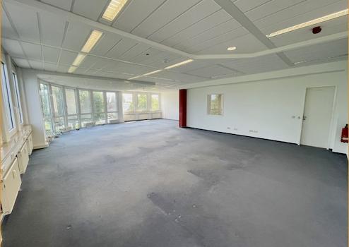 Die Beleuchtung erfolgt über moderne Bürolampen, die für eine optimale Ausleuchtung sorgen. Die Fenster sind doppelt verglast, sodass eine ruhige Arbeitsumgebung gewährleistet ist.