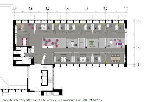 Der Gebäudekomplex besteht aus drei Bauteilen, welche über ein repräsentatives Foyer miteinander verbunden sind. Alle Bauteile wurden im Jahre 2000 vollständig saniert und auf einen hochwertigen Gebäudestandard verbaut. Die Büroimmobilie besticht durch ein hauseigenes Restaurant, E-Ladesäulen, Leihfahrräder und Duschen mit Schließfächern. Zusätzlich steht eine Konferenzetage mit Räumen zur tageweisen Anmietung zur Verfügung.