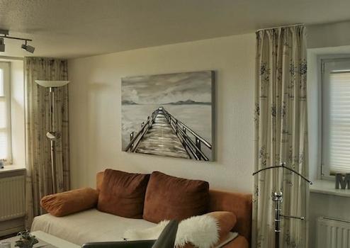 Im „Strandcafe Halligblick“ befindet sich 1 Appartement mit Doppelbett. Dieses Appartement steht ebenfalls auch als Einzelzimmer zur Verfügung