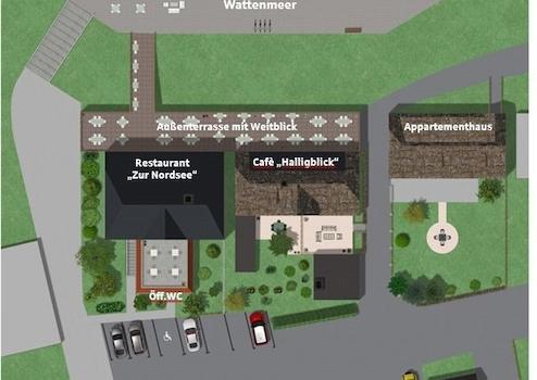 Restaurant „Zur Nordsee“ | Strandcafè „Halligblick“ | Appartementhaus