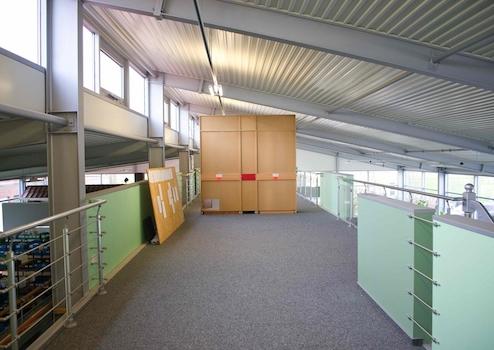 Derzeit ist die Fläche durch einen Raumteiler in eine großzügige Verkaufsfläche und eine Lagerfläche aufgeteilt. Eine zusätzliche Fläche von ca. 30 m² im 1. Obergeschoss, die über eine Treppe erreichbar ist, eignet sich ideal als Büro-, Lager- oder Besprechungsraum.