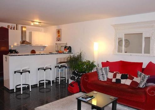 Die Böden im Wohn-Essbereich, in der offenen Küche und im Dielenbereich sind mit hochwertigen dunklen Fliesen belegt. Die sanitären Räume sind mit weißen Fliesen sowie weißen Keramiken ausgestattet. Diverse Einbauschränke und ein Kellerraum gehören zur Wohnung.