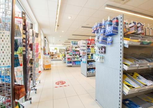 Die vorhandene Regalierung und die Verkaufstheke gehören zur Einrichtung dazu.