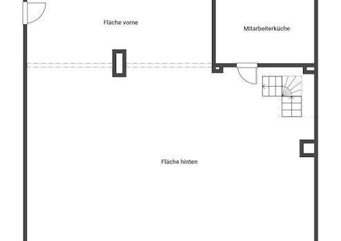 Eine Treppe innerhalb des Gewerbes führt in die eigenen Kellerbereiche zum Lagern von erforderlichen Vorräten, Materialien etc.