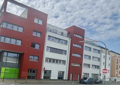 Der Gebäudekomplex wurde im Jahr 2008 errichtet und befindet sich in einem sehr gepflegten Zustand. Weitere Büroflächen im Gebäude werden aktuell durch eine Krankenkasse genutzt. Über den Eingang gelangt man in das moderne Treppenhaus mit Aufzug, welches derzeit ausschließlich durch die gewerblichen Mieter im Gebäude genutzt wird. Neben den gewerblichen Nutzflächen gibt es noch weitere Wohnungen sowie eine Tiefgarage mit Kfz-Stellplätzen im Objekt. Die hellen Büros mit abgehängter Rasterdecke sind alle sehr gut belichtet und verfügen über eine Außenbeschattung auf der Südseite sowie Fensterlüftung. Vom zentralen (innenliegenden) Server-/Archivraum werden die Datenleitungen (CAT-7) in die einzelnen Büros geführt. Über Bodentanks im Fußboden können die jeweiligen Arbeitsplätze vernetzt werden. Neben dem Mitarbeiterraum mit allen Anschlüssen für eine Küchenzeile gibt es dann noch je ein Damen- und Herren-WC mit dezentraler Warmwasseraufbereitung.