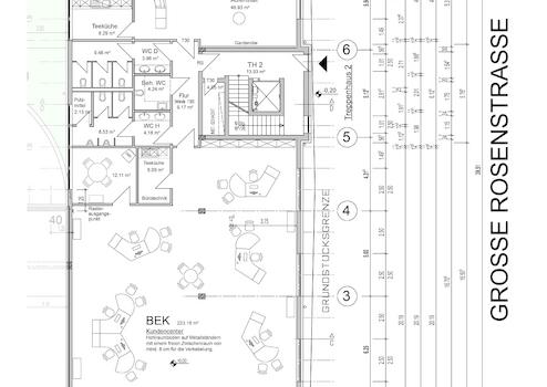 Der Gebäudekomplex wurde im Jahr 2008 errichtet und befindet sich in einem sehr gepflegten Zustand. Weitere Büroflächen im Gebäude werden aktuell durch eine Krankenkasse genutzt. Die Mietfläche verfügt über einen separaten Eingang mit Automatiktür und eigener postalischer Adresse. Neben den gewerblichen Nutzflächen gibt es noch weitere Wohnungen sowie eine Tiefgarage mit Kfz-Stellplätzen im Objekt. Die hellen Büros mit abgehängter Rasterdecke sind alle sehr gut belichtet. An den Mitarbeiterbereich angeschlossen befindet sich eine kleine Terrasse mit Blick in den Innenhof. Vom zentralen (innenliegenden) Server-/Archivraum werden die Datenleitungen (CAT-7) in die einzelnen Räume geführt. Über Bodentanks im Fussboden können die jeweiligen Arbeitsplätze vernetzt werden. Neben dem Mitarbeiterraum mit Teeküche gibt es dann noch je ein Damen- u. Herren WC sowie ein barrierefreies WC mit dezentraler Warmwasseraufbereitung. Im hinteren Bereich der Mietfläche befindet sich ein großzügiger Besprechungs-/Veranstaltungsraum der multifunktional genutzt werden kann.