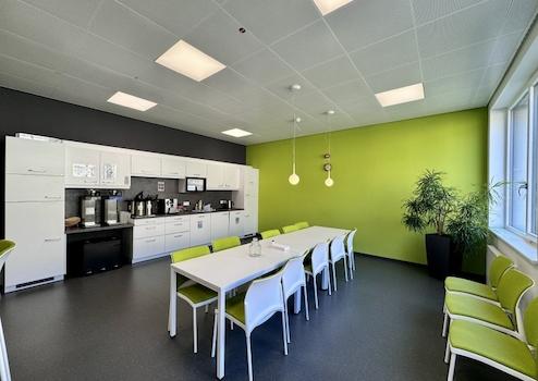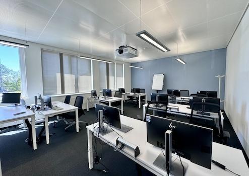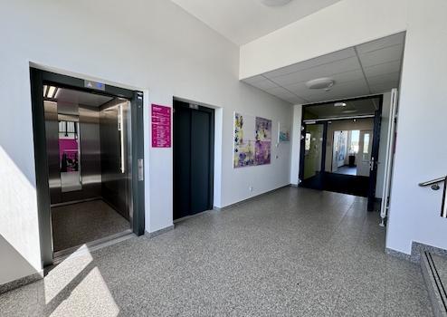 Das Gebäude ist von modernster Ausstattung, wie Klimatisierung, Cat7a-Datenverkabelung und LED-Beleuchtung geprägt. Alle Flächen sind barrierefrei und über zwei Aufzüge zugänglich.