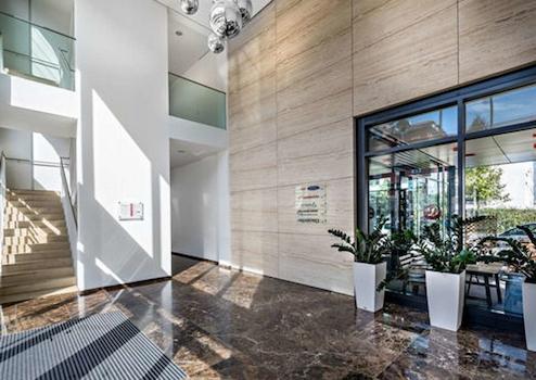 Dieses anspruchsvolle Neubau-Büroensemble besticht durch hochwertig ausgebaute Mietflächen und eine Tiefgarage. Dachterrassen, Loggien und Innenhöfe bieten eine faszinierende Aussicht und laden zu kreativen Pausen ein. Die großzügig verglasten Fassaden des 6-geschossigen Gebäudes ermöglichen einen beeindruckenden Blick über die Dächer Münchens. Die erfrischende Wahl der Farben und Materialien - weißer Lack, Naturstein, viel Glas und Licht - harmoniert optimal mit der Bauweise und den Proportionen des Gebäudes.