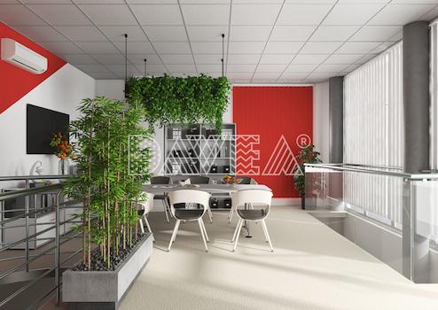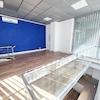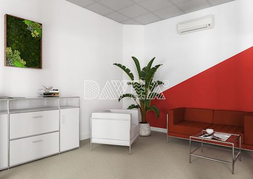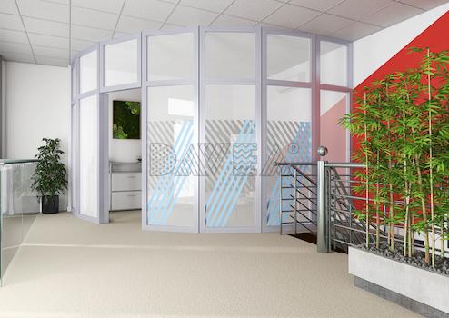 Dieses sehr helle und freundliche Büro ist hochwertig ausgestattet. Sie finden zu der Fußbodenheizung einen angenehmen hellen Fussboden in Holzoptik. Die Wände sind hell gestaltet. (eine blaue Wand kann geändert werden) Die Fenster sind raumhoch mit Isolierglas 1,3.