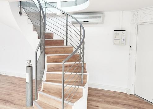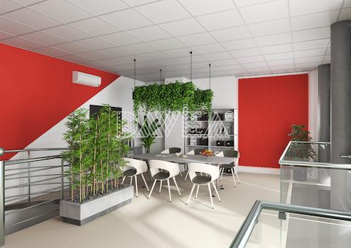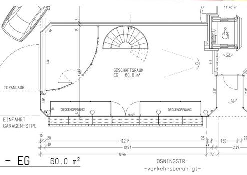 Im Erdgeschoss haben Sie zur Zeit eine angenehme Trennung aus Glas, die als gesondertes Büro genutzt werden kann. Hier befindet sich, wie im weitern Raum und im Untergeschoss eine Klimanlage.