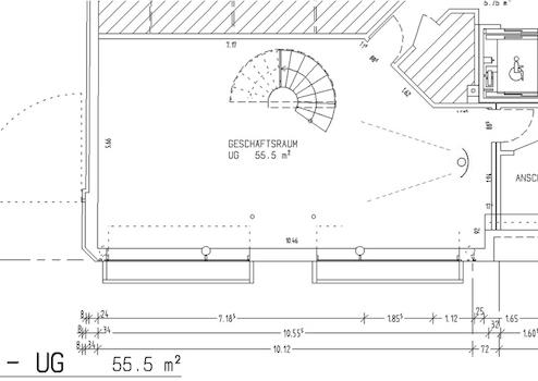 Die sehr große Fensterfront kann ideal für Werbefolie genutzt werden. (ggf. kann die vorhandene Folierung sogar weiter genutzt werden). Die Räumlichkeiten teilen sich mit je ca. 60 m² pro Etage auf. Das Untergeschoss ist vollwertig zu nutzen, da es durch die großzügige Lichtschachtanlage über die gesamte Schaufensteranlagenbreite hinreichend mit Tageslischt versorgt wird.