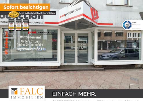 Das ca. 3m lange Schaufenster, jeweils links und rechts, bietet Ihnen die gewünschte Werbefläche, um Ihrem Geschäft die entsprechende Sichtbarkeit zu ermöglichen.