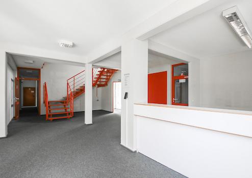 Zwei Eingangsbereiche sind für Kunden ansprechend gestaltet, Treppenhaus und Zugang präsentieren sich hell und freundlich.