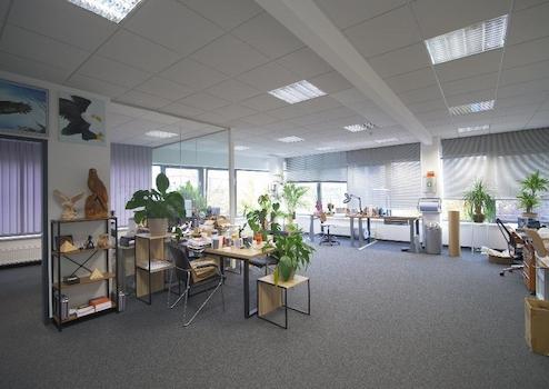 Das Büro befindet sich in einem zweigeschossigen Neubau aus dem Jahre 1995, der Büroflächen sowie