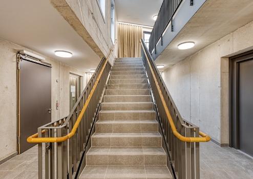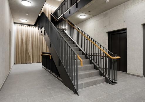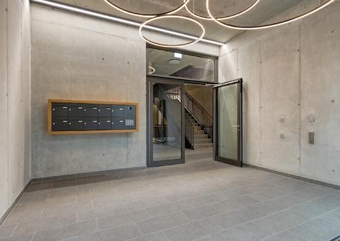 Moderne sanitäre Anlagen sind getrennt für Herren und Damen vorhanden, zusätzlich gibt es barrierefreie WCs auf jeder Etage, was den Komfort und die Nutzbarkeit für alle Mieter und Besucher sicherstellt. Diese umfassende Barrierefreiheit unterstreicht die moderne und inklusive Ausrichtung des gesamten Gebäudes.